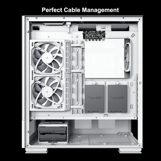 - Efficient Cooling: White liquid cooler and airflow case maintain optimal temps