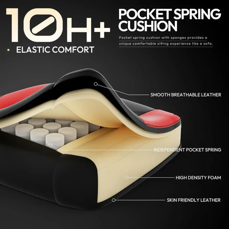 Dowinx Gaming Chair – Massage cushion, premium faux leather, ergonomic design with footrest, 360-degree swivel, adjustable neck and lumbar support cushion, suitable for home and office use – Black&Red ( Installation not included )