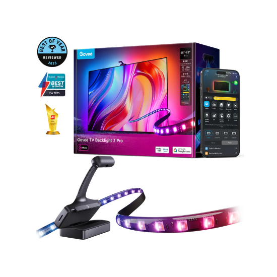 The Govee TV Backlight 3 Pro R2A80C11 is the 55–65 inch variant of Govee’s most advanced TV backlight system — delivering the same industry-leading HDR triple-camera precision16-bit RGBWWIC color accuracy, and AI-powered smart features as its larger sibling, perfectly sized for mid-range televisions. The industry-first HDR triple-camera system processes screen content at 1080p/30fps, with three 86° FOV lenses working in perfect tandem to achieve complete, seamless screen coverage with zero blind spots — a level of color capture precision no single-camera system can approach.