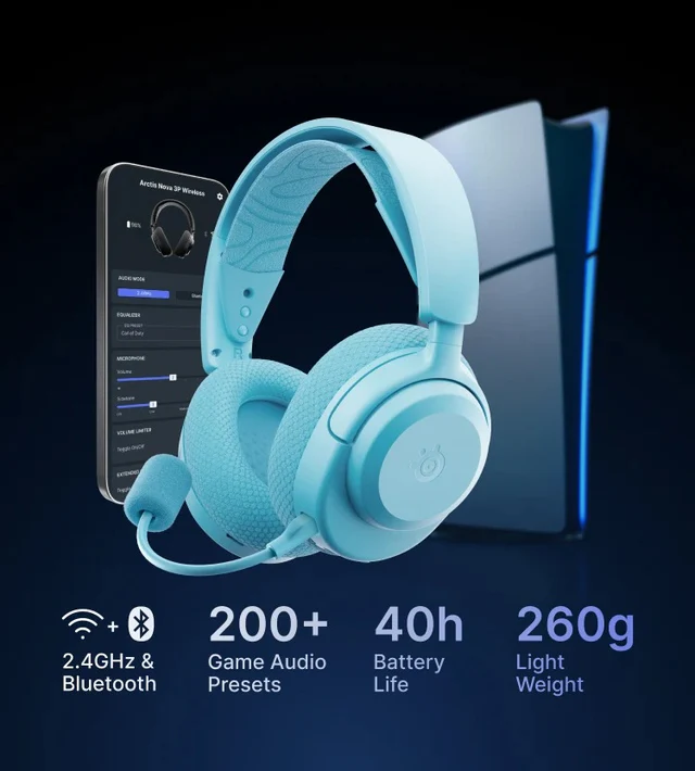 The SteelSeries Arctis Nova 3P is a versatile gaming headset built for PC, PlayStation, Xbox, and mobile. It delivers immersive sound with the Nova Acoustic System, a comfortable lightweight build, and multi-platform connectivity for flexible use.