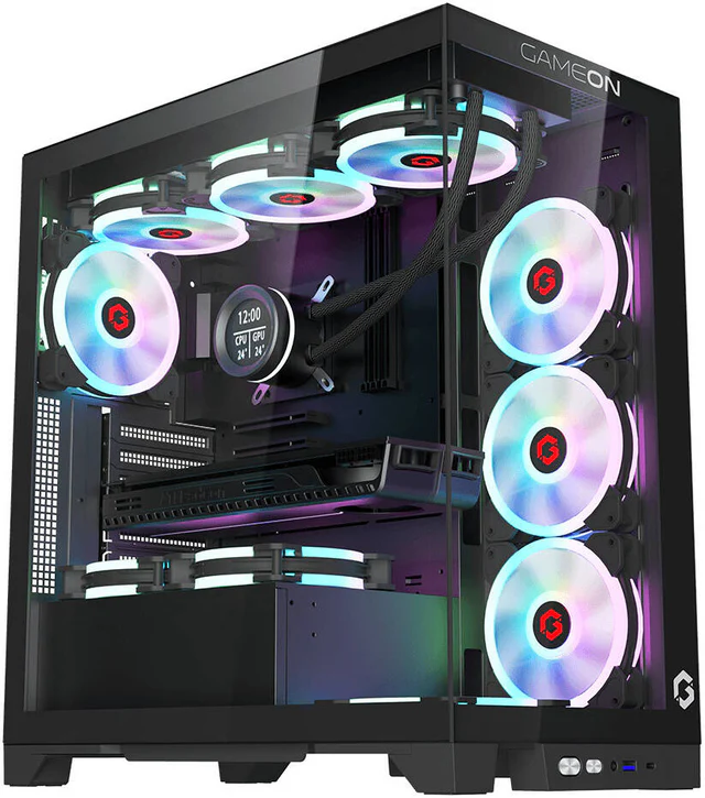- Case: GameOn Emperor Midnight Series 7FAN Mid Tower – Black