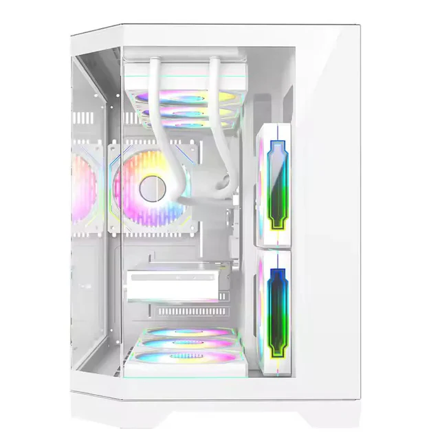 - Case: DarkFlash Aigo FT418 Pro Mid Tower (White) – dual-panel tempered glass with 7 pre-installed RGB fans for maximum airflow.