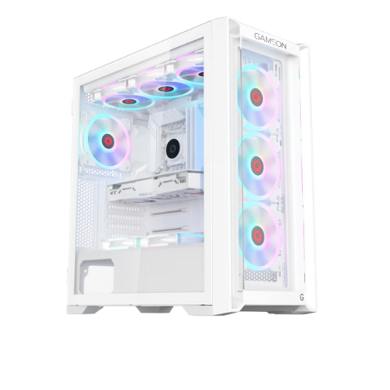 •  GameOn Vortex Arctic Series case with modern design and airflow optimization