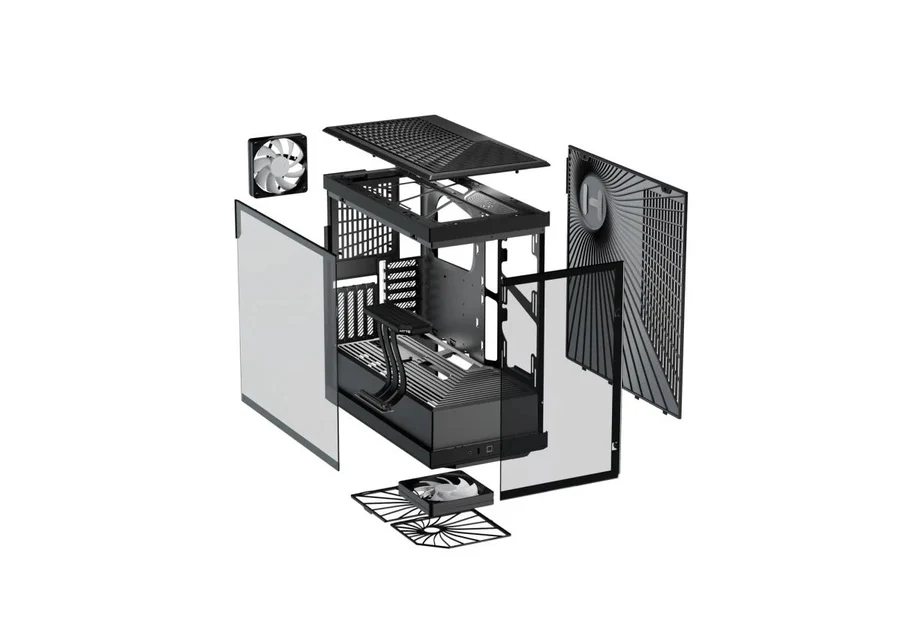 - HYTE Y40 panoramic case with dual 120mm fans and tempered glass.