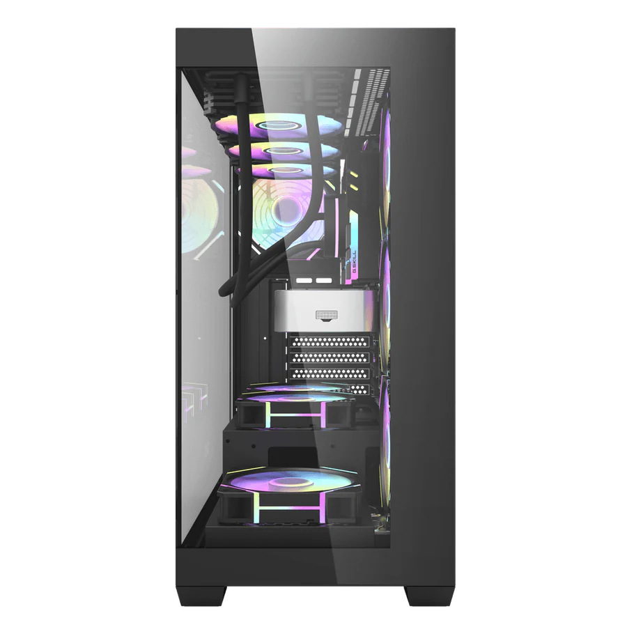 Unique panoramic side panel with spacious layout and elegant airflow-ready design.