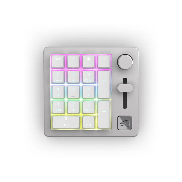The Glorious GMMK Numpad Premium Wireless MacroPad in White expands your setup with advanced functionality and elegant design. Designed for creators, gamers, and professionals, it combines precision engineering with customization freedom. Use it as a standalone numpad or a macro pad to control lighting, audio, and shortcuts across your workflow.