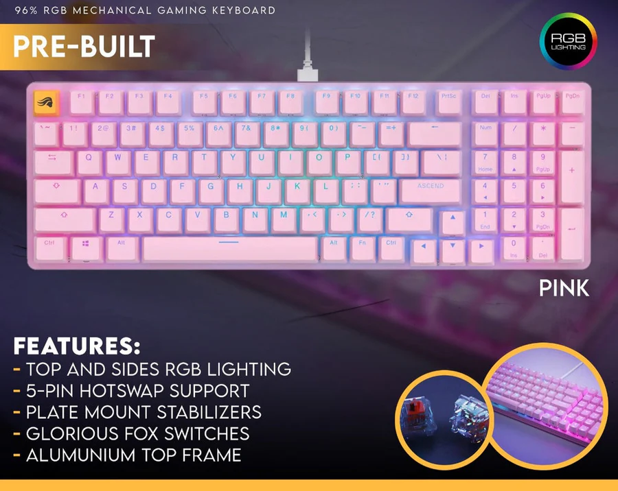- Glorious GMMK2 Full-Size 96% Mechanical Keyboard – Pink