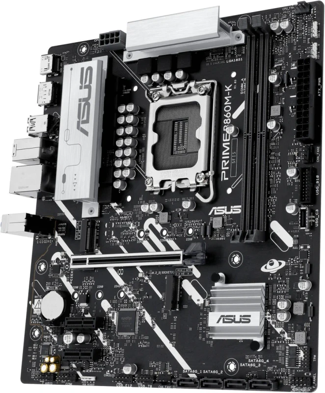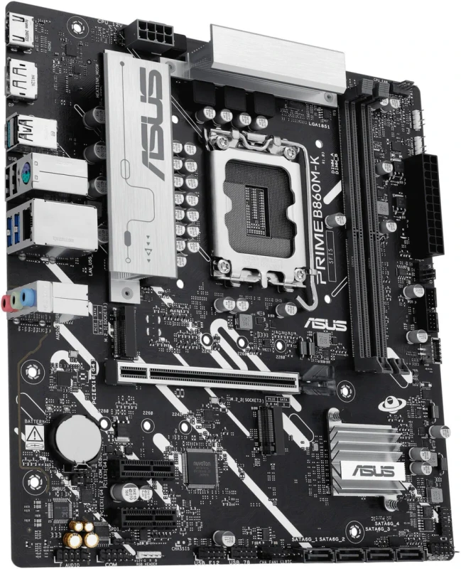 The ASUS Prime B860M-K is a Micro-ATX motherboard designed for Intel’s latest LGA 1851 processors. Built for everyday computing and entry-level gaming, it provides a stable platform with DDR5 support, PCIe 5.0, M.2 storage options, and comprehensive connectivity in a compact form factor.