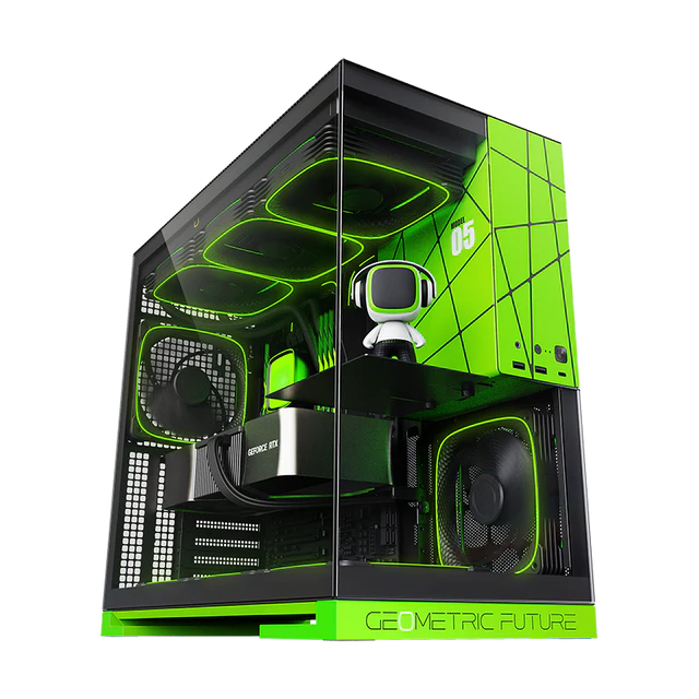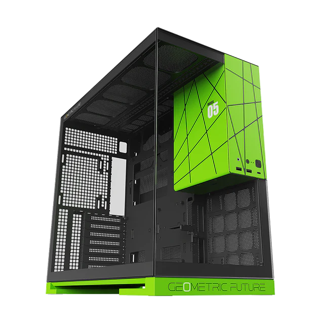 Geometric Future Model 5 Mid Tower Glass Case with 5 Fans – Black & Green