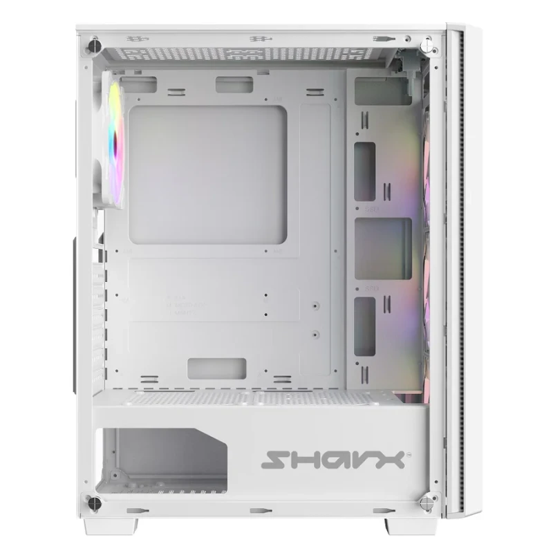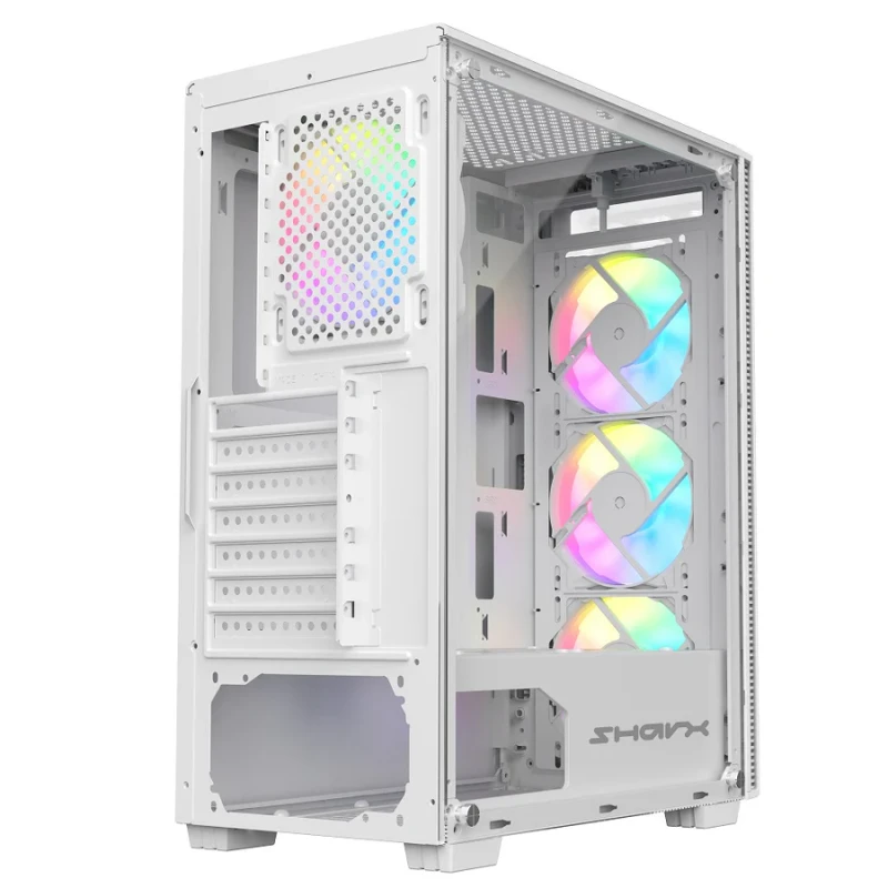 The SHARX STRIKER ARGB ATX PC Case (Model S-200) delivers strong airflow and a clean, functional design. It features a full mesh front panel to maximize air intake and a tempered glass side panel to showcase internal components. With four pre-installed 120mm ARGB fans, it provides immediate cooling and lighting for gaming or workstation builds.
