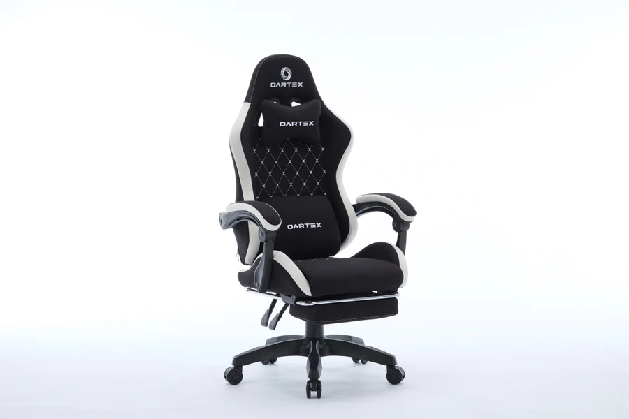 - Full gaming setup with PC, monitor, desk, chair, and accessories.