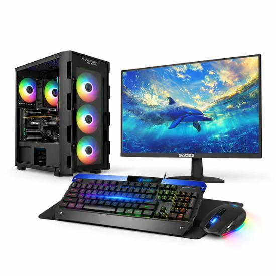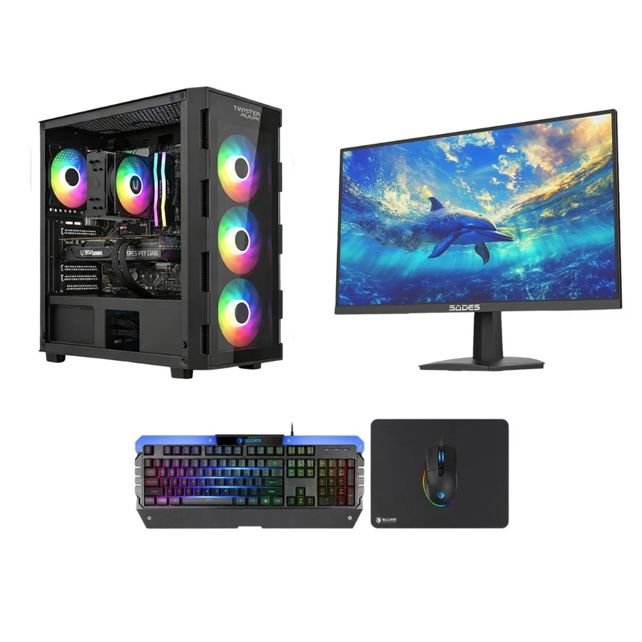 This premium gaming bundle includes a high-performance desktop, 27-inch 200Hz gaming monitor, and RGB gaming combo for a complete setup. The Intel Core i5-12400F processor and Asus Dual GeForce RTX 5060 OC 8GB Pcle 5.0 Gaming Graphics Card deliver smooth gameplay in modern titles, while 16GB DDR5 6400MHz memory and a 500GB NVMe SSD keep the system fast and responsive. The Twisted Mind Titan Glass case adds strong airflow and clean RGB styling, and Windows 11 Pro comes pre-installed for instant use.