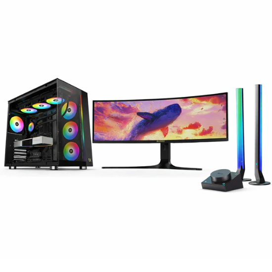 This bundle includes a high-end gaming PC, 49-inch OLED monitor, and RGB lighting kit. It supports 4K gaming, streaming, and heavy workloads with stable performance. Windows 11 Pro is installed and ready.