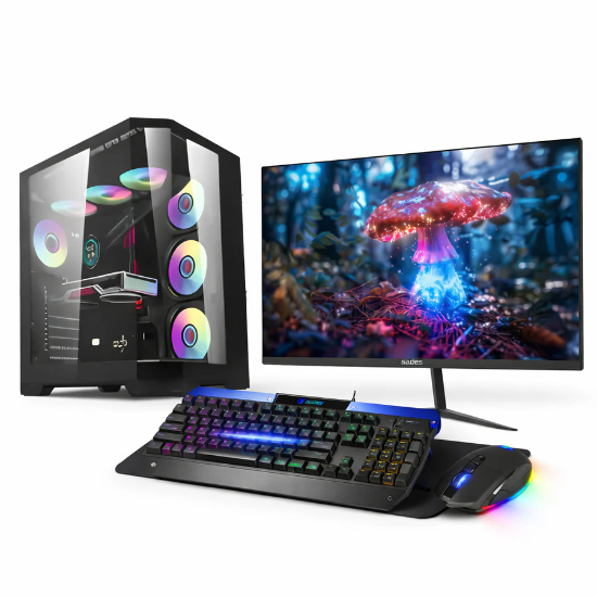 This gaming bundle includes a desktop, monitor, and gaming combo. It supports smooth 1080p gameplay and daily use. The RTX 3050 graphics card and Intel i5 processor deliver stable performance, while the monitor and accessories complete your setup.