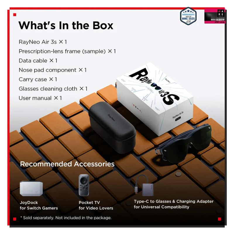 RayNeo Air 3s transforms any space into a private 201-inch cinema. With a bright 1080p micro-OLED display, premium surround audio, and ultra-light 76g design, these AR glasses deliver portable big-screen entertainment for movies, gaming, and productivity. Plug in and enjoy lag-free visuals with universal USB-C compatibility.