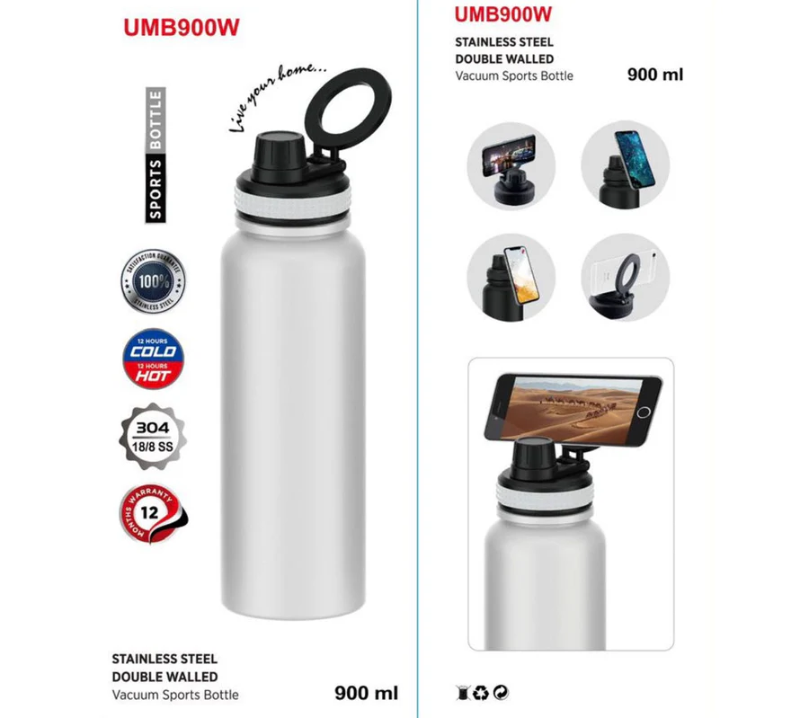 A 900ml stainless steel sport bottle designed for durability and temperature retention. Ideal for daily use, sports, and travel.
